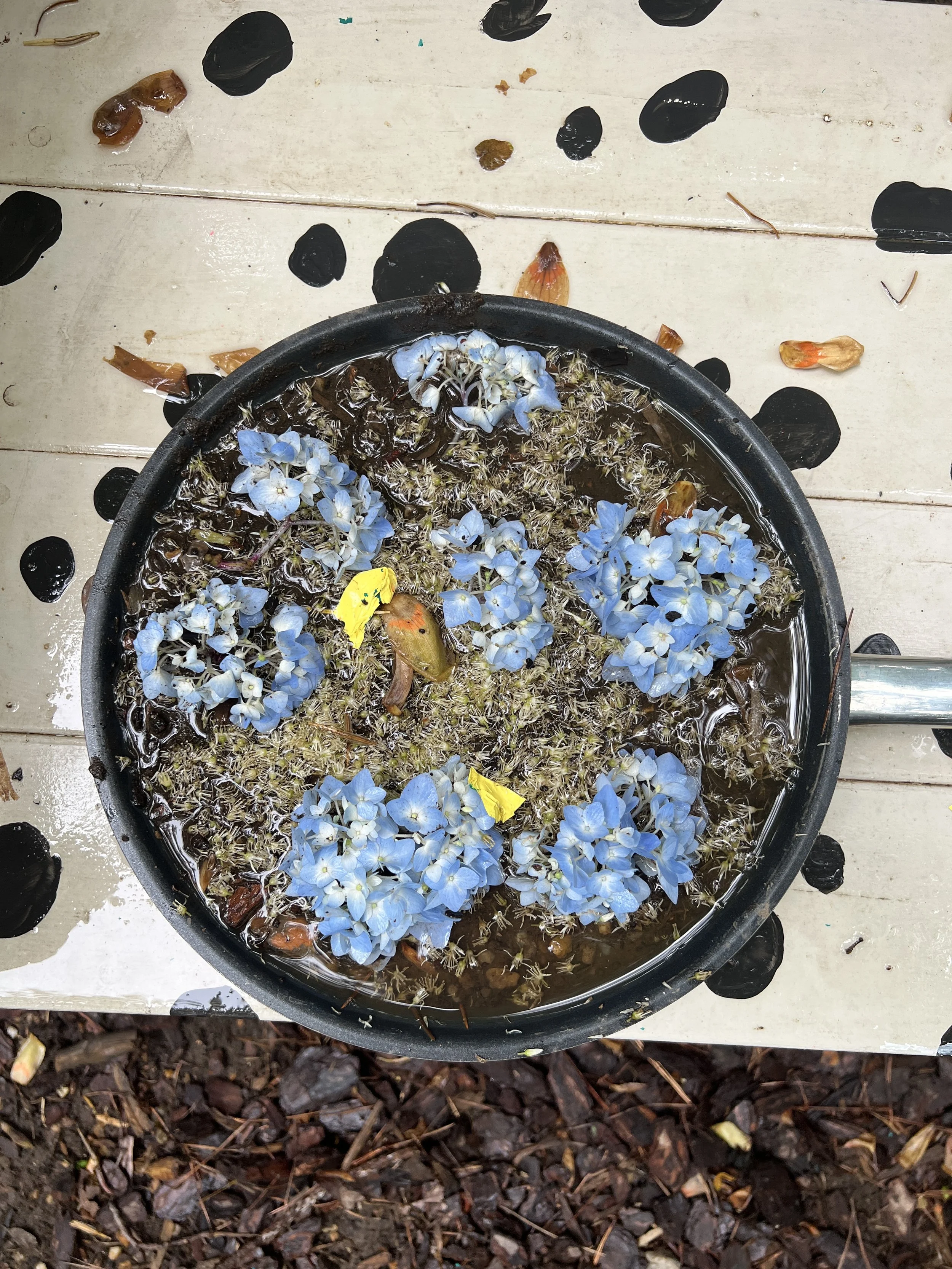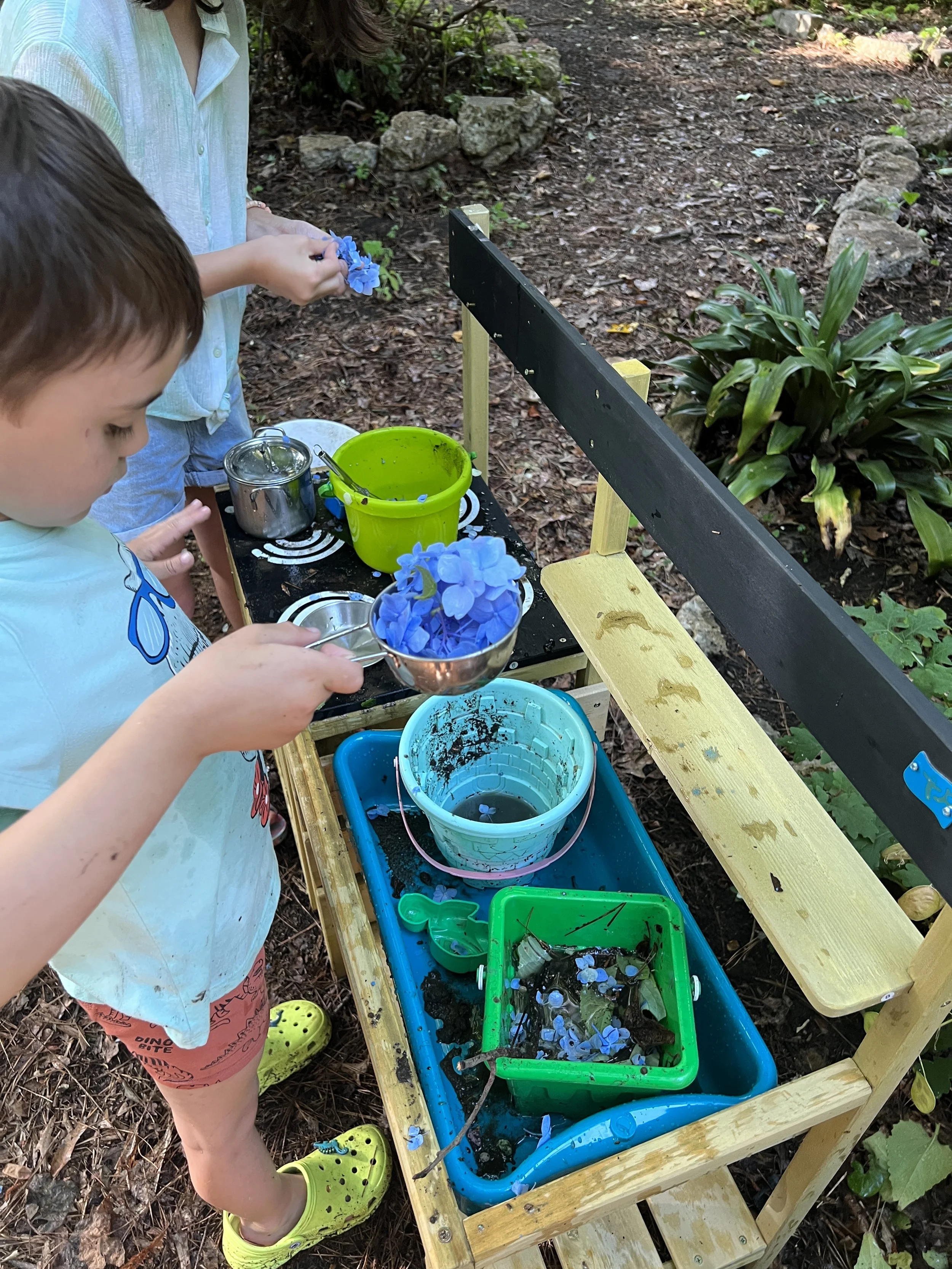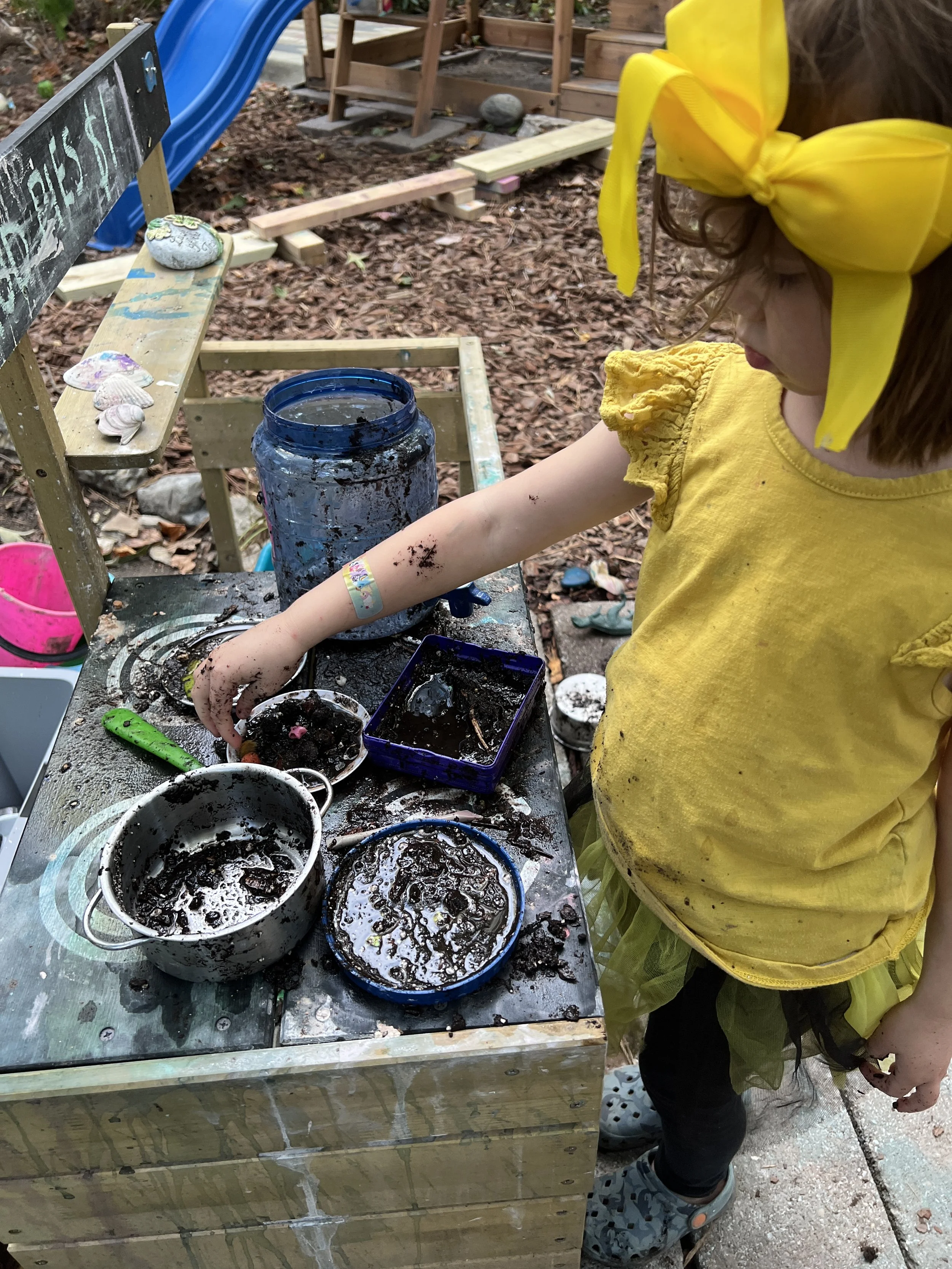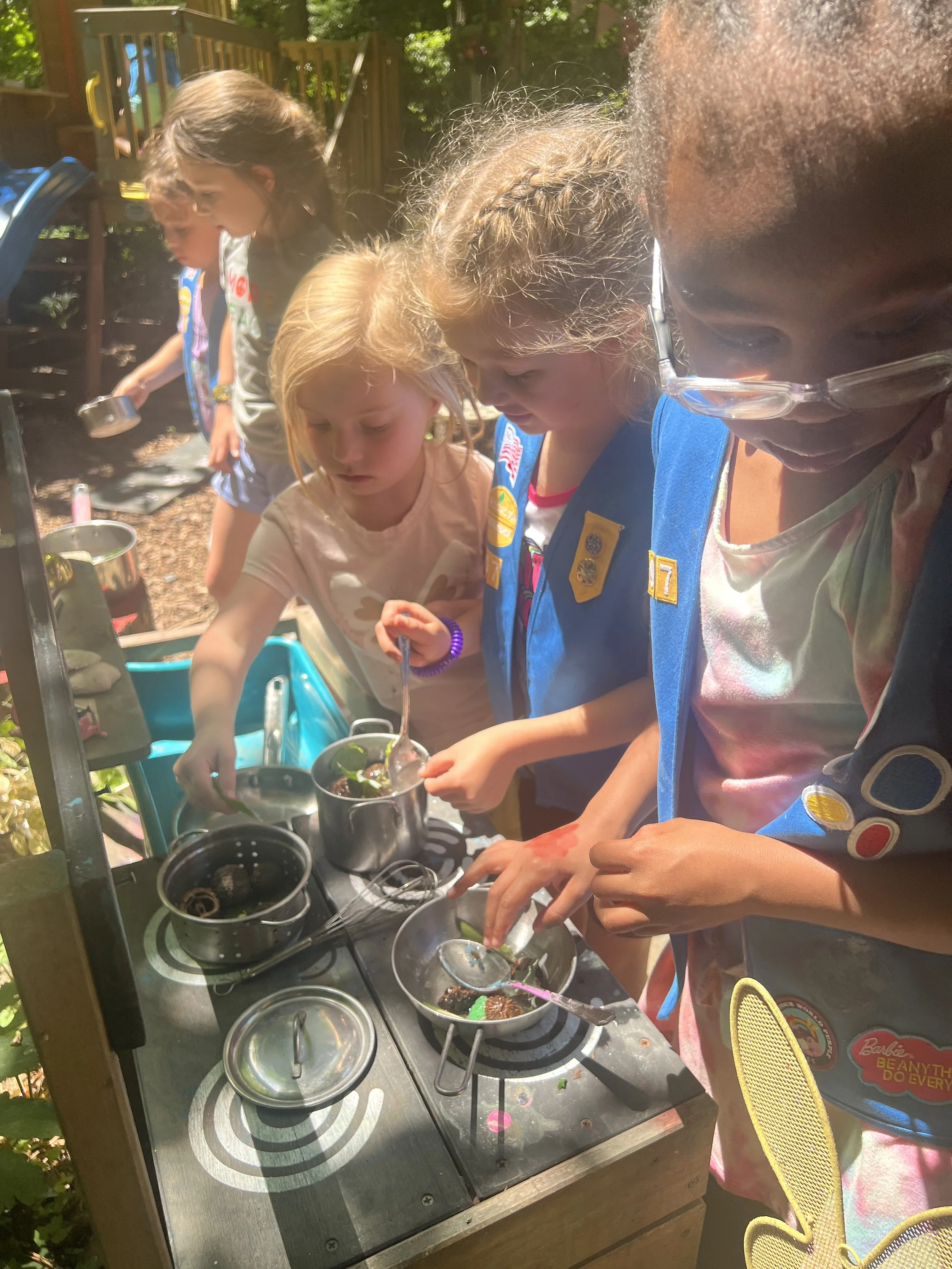 Use mud, leaves, and sticks to "cook" imaginative dishes, engaging in playful, sensory learning outdoors.