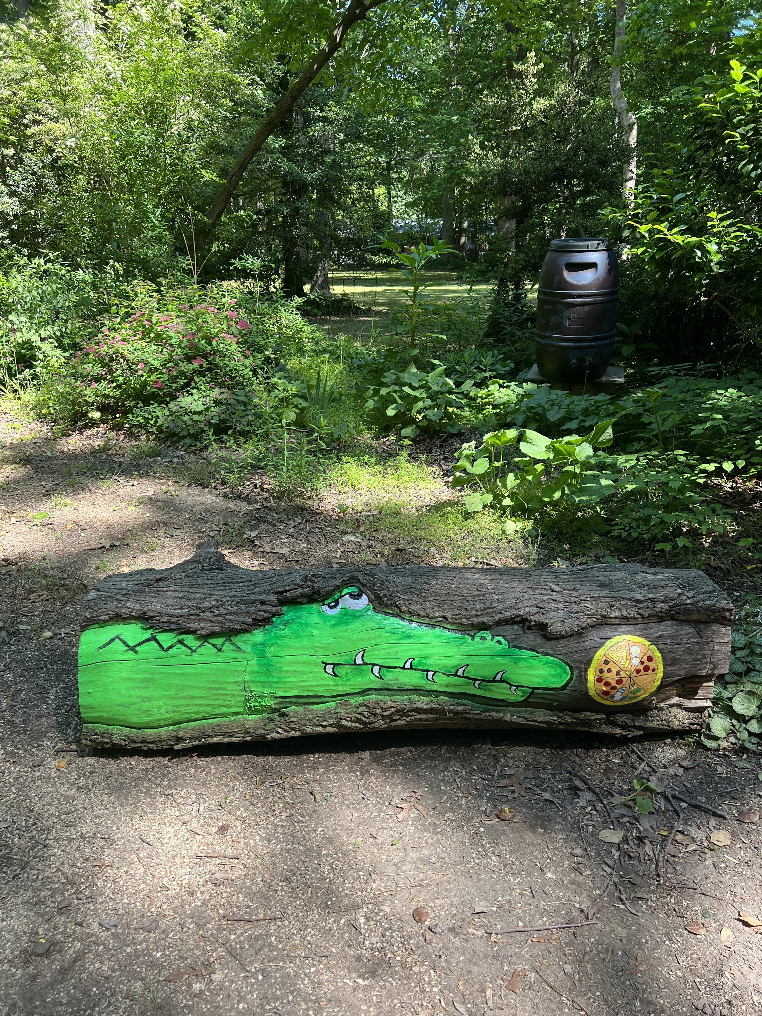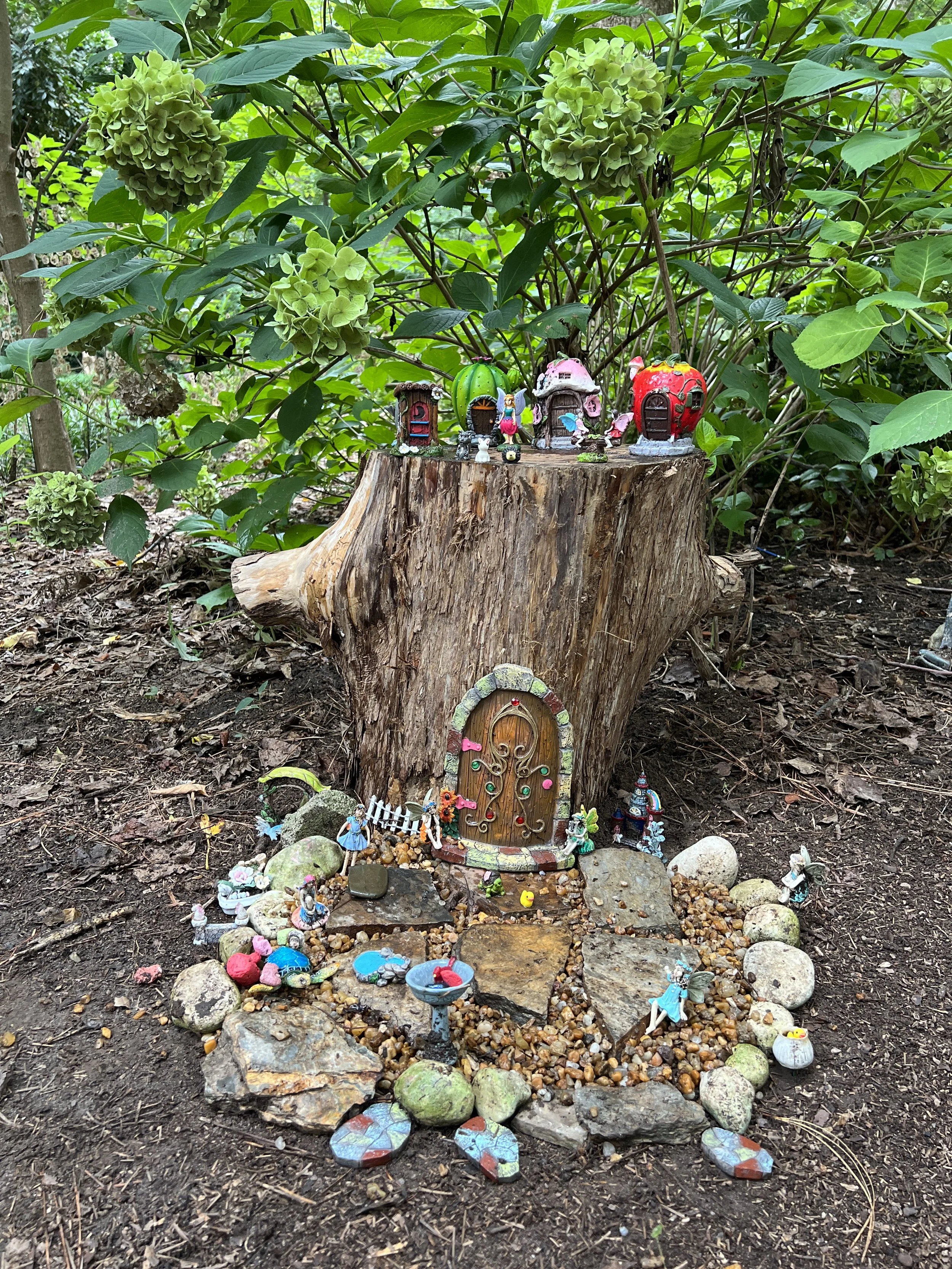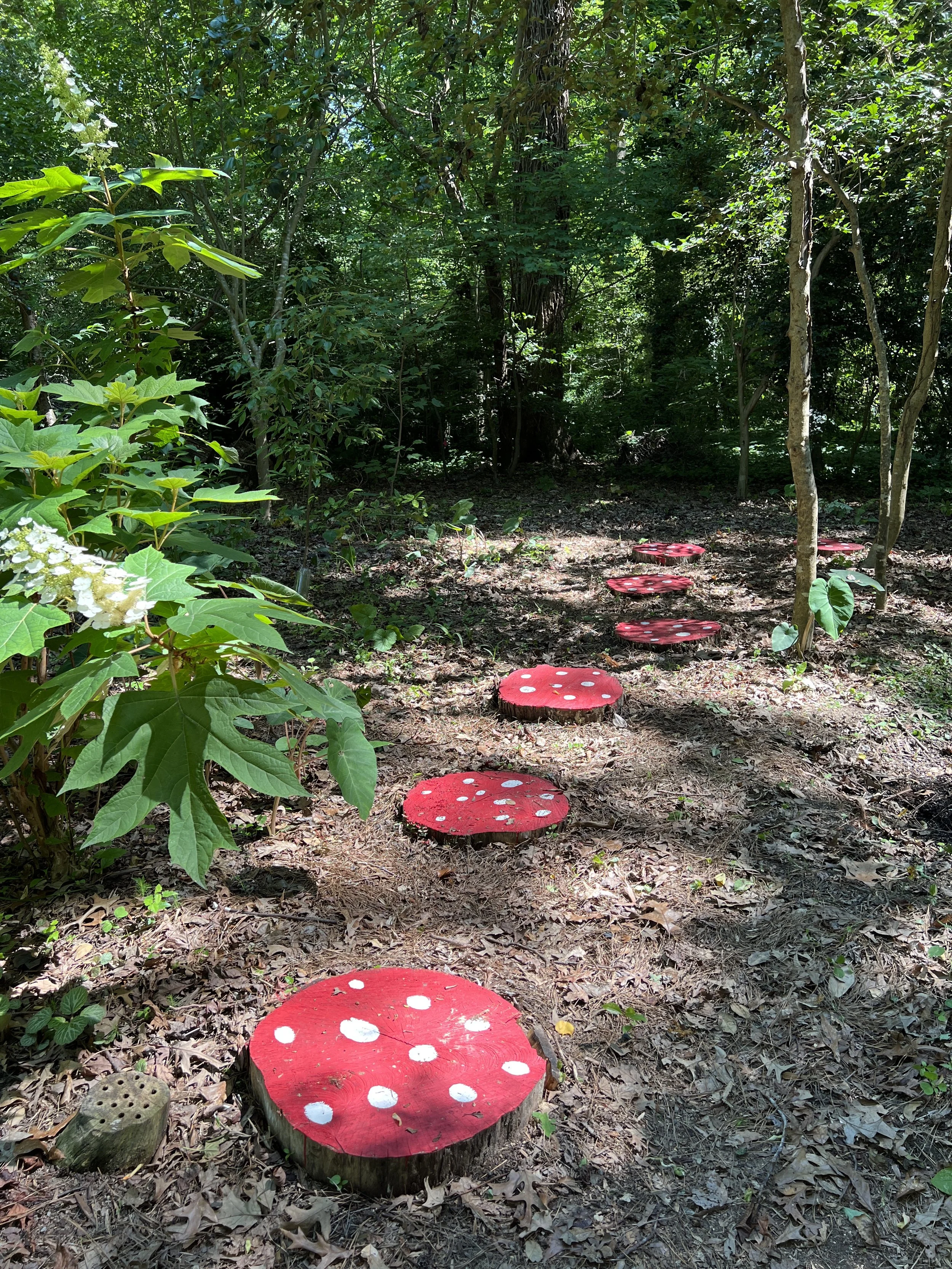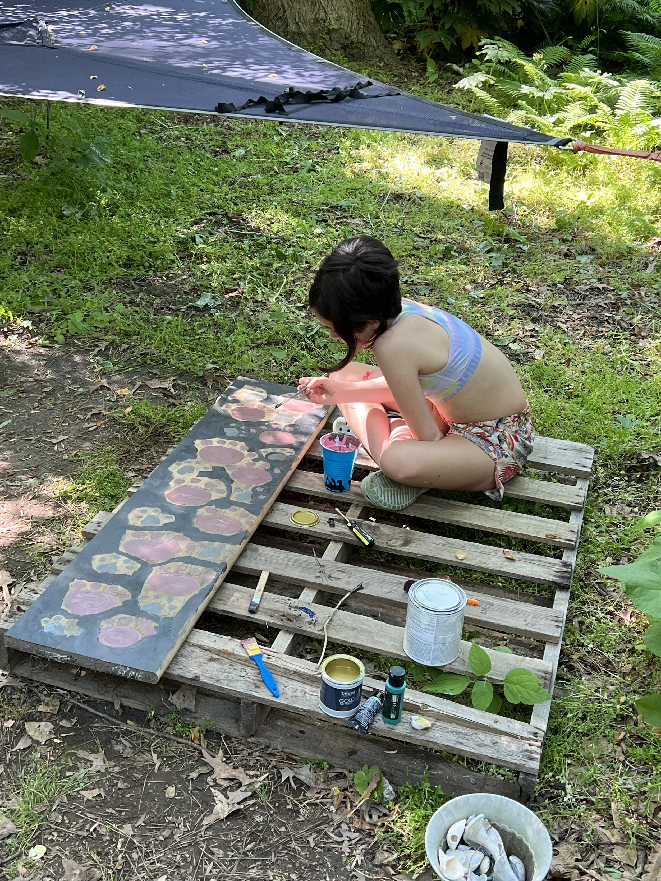 Transform tree stumps into colorful canvases, painting vibrant designs that blend creativity with the natural textures of the forest.