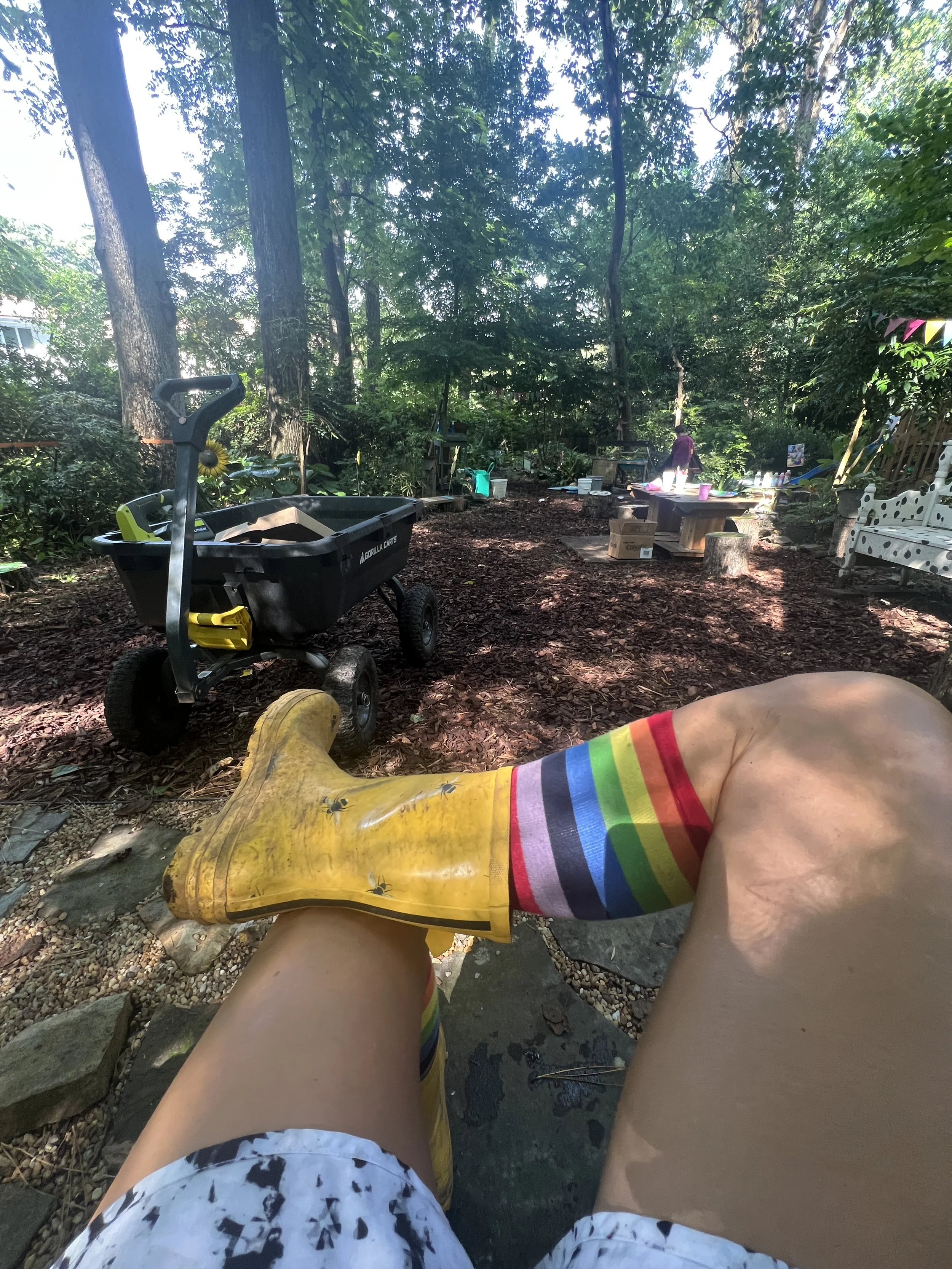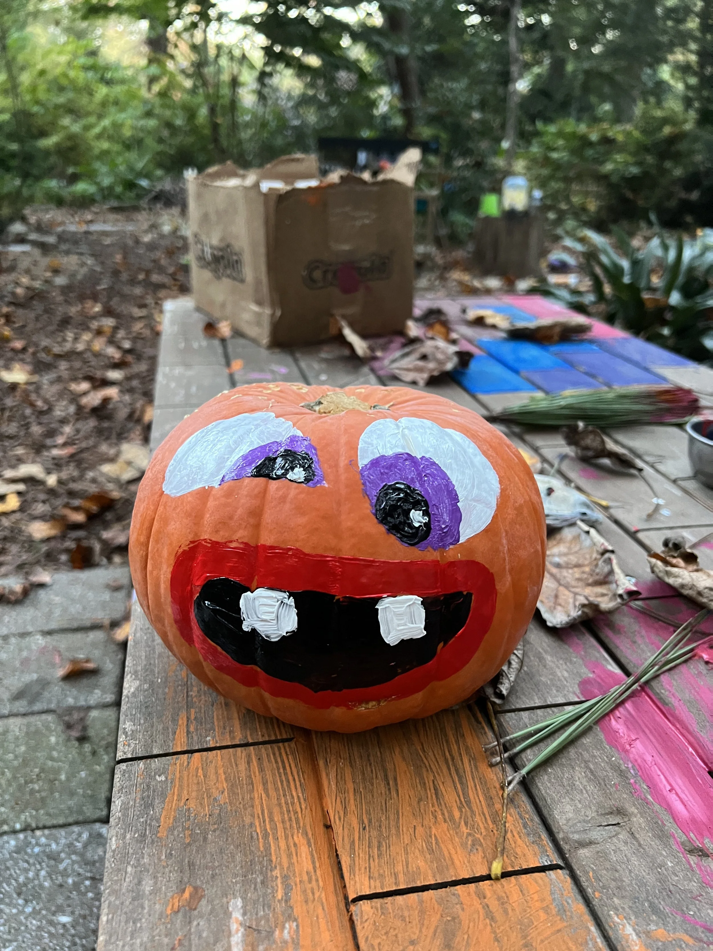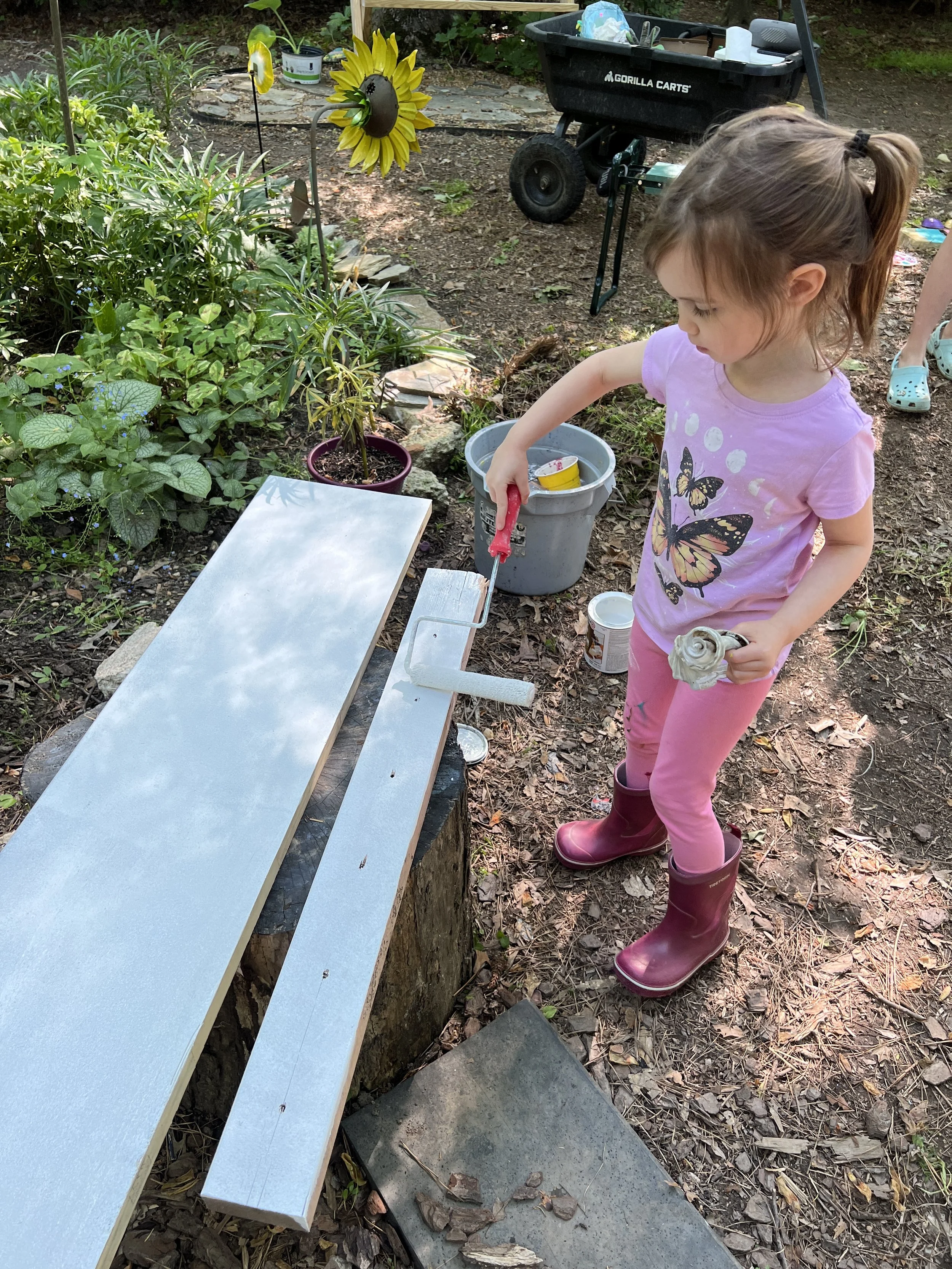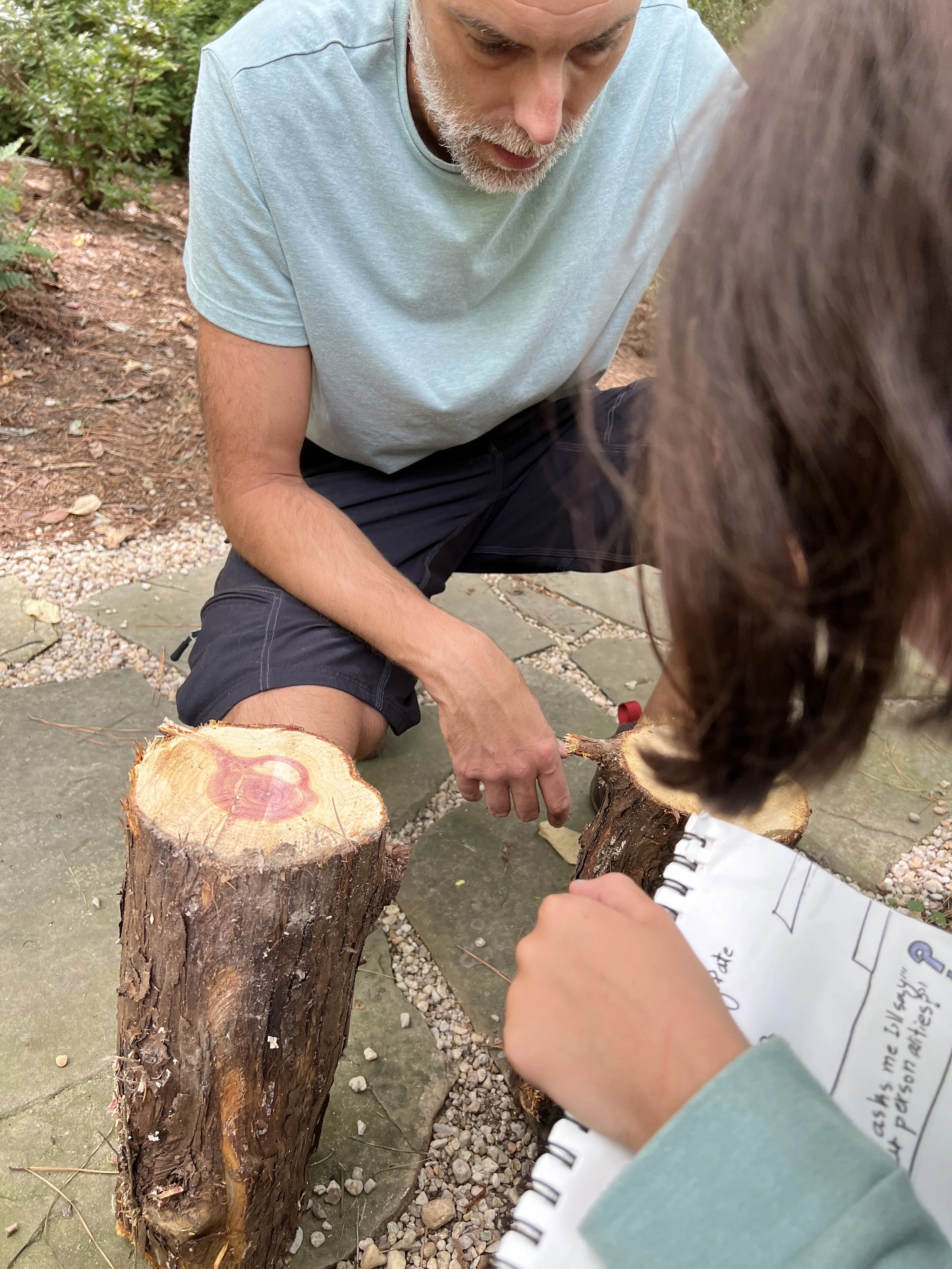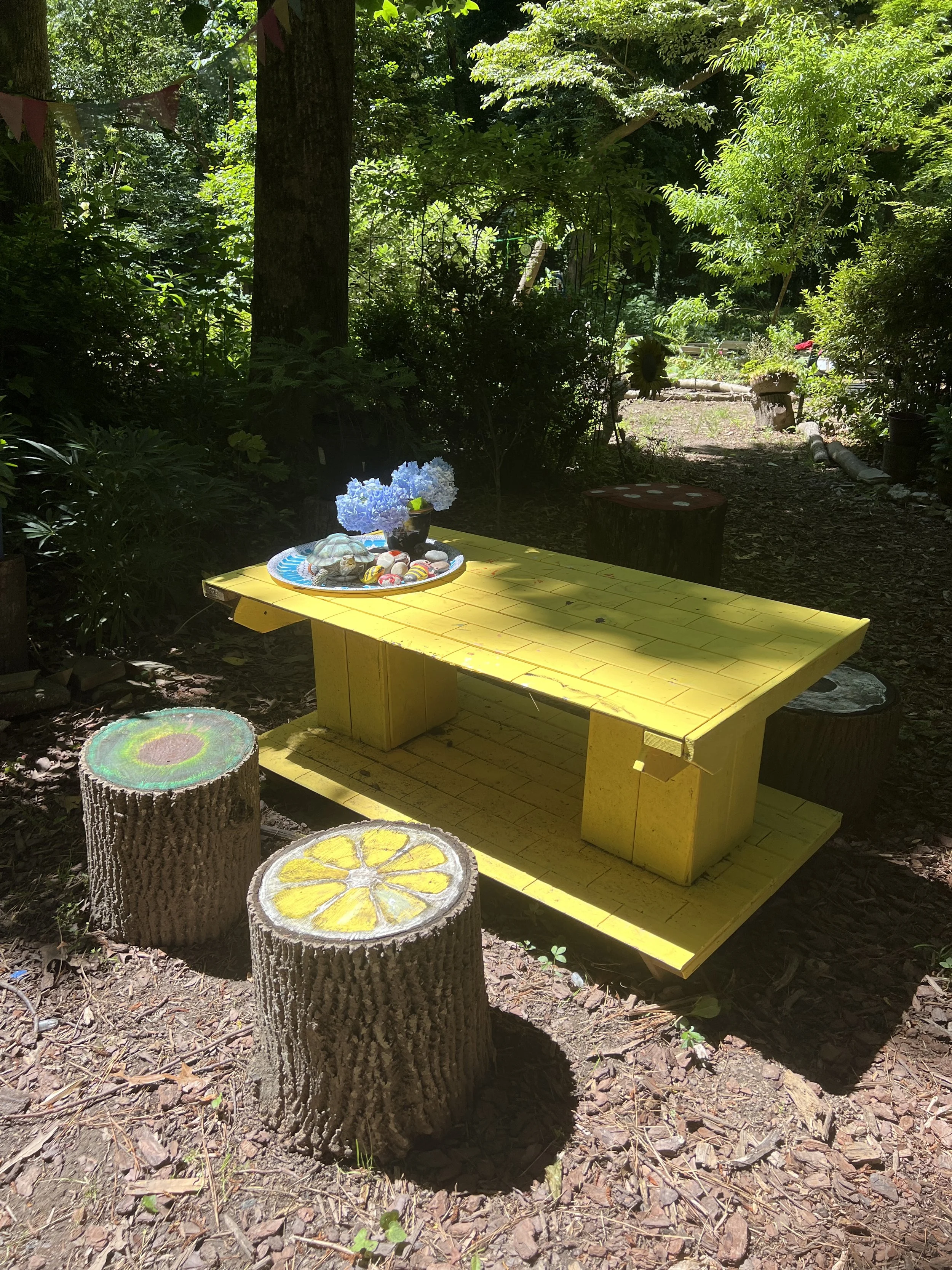 Transform tree stumps into colorful canvases, painting vibrant designs that blend creativity with the natural textures of the forest.