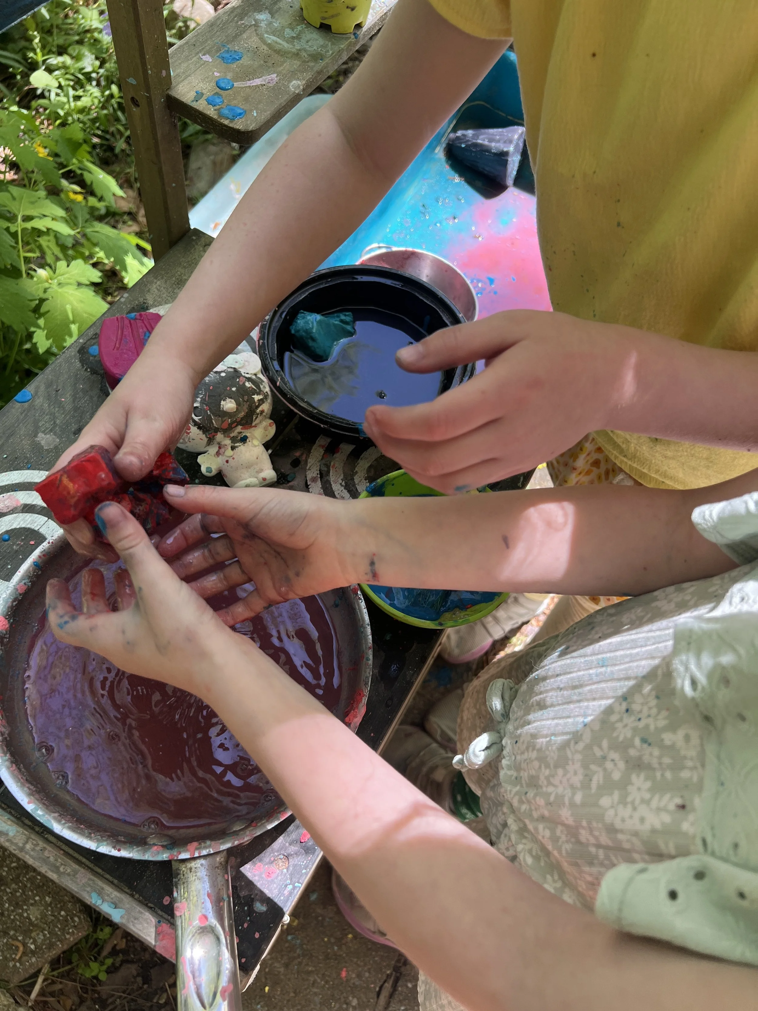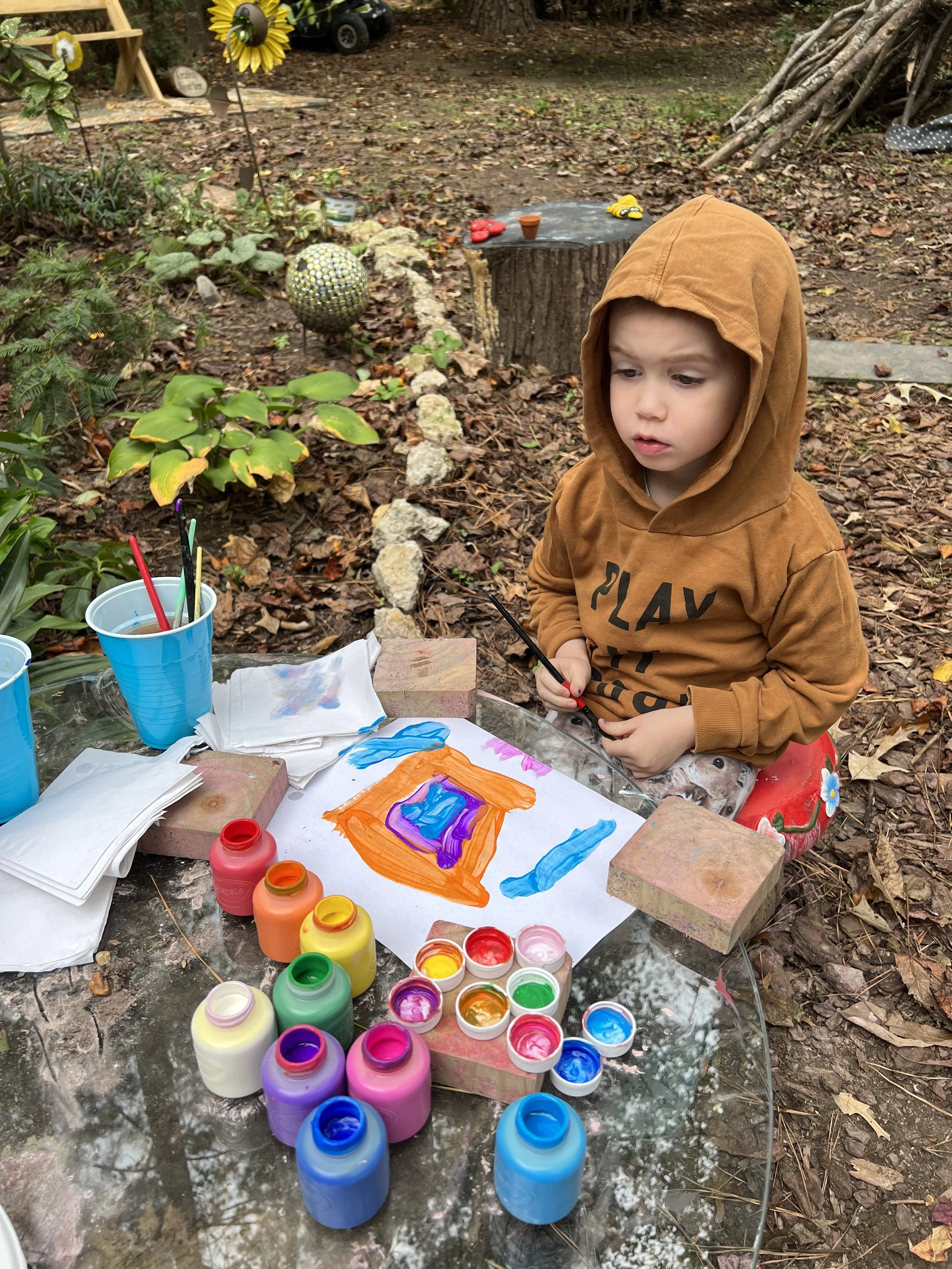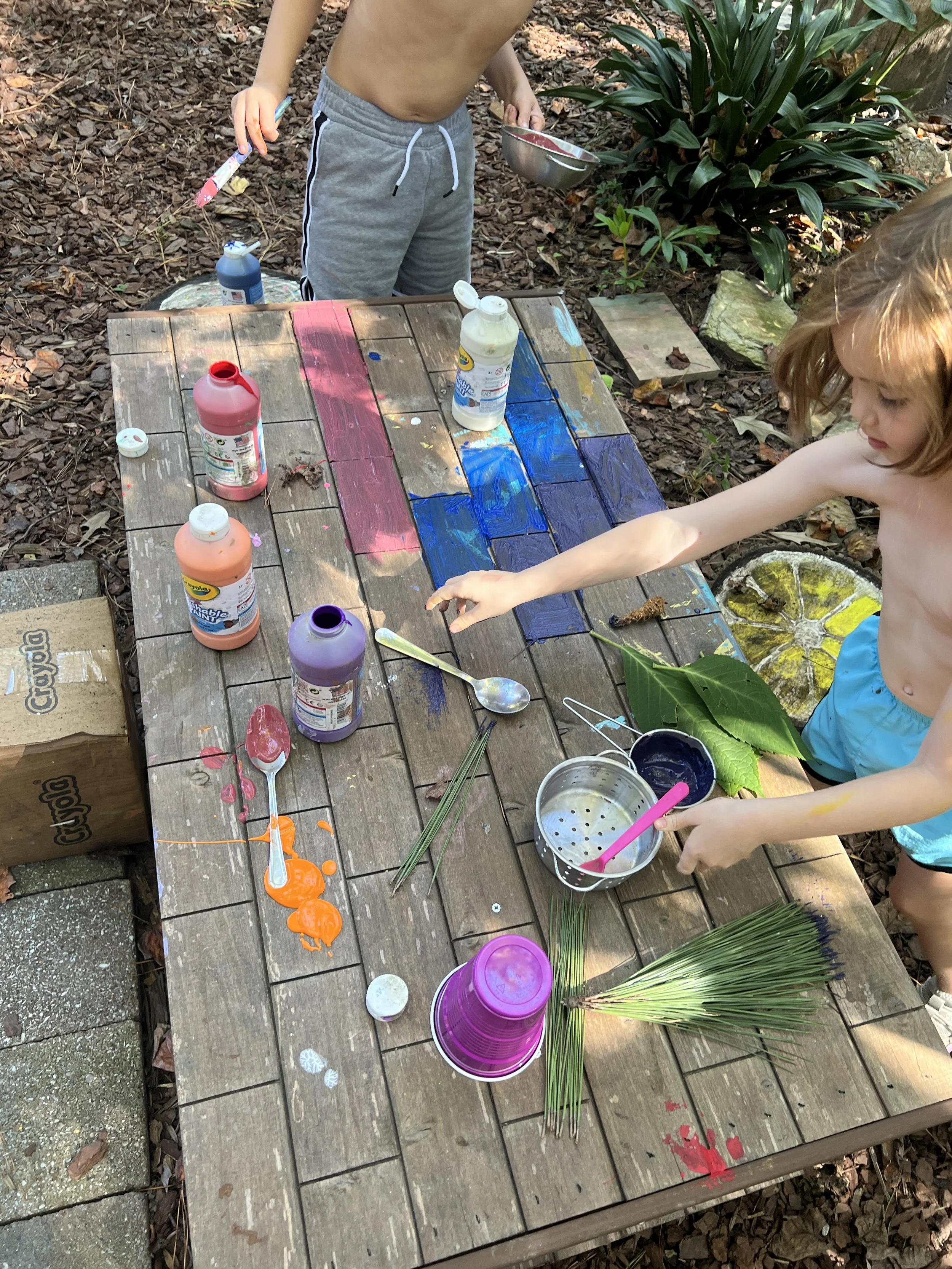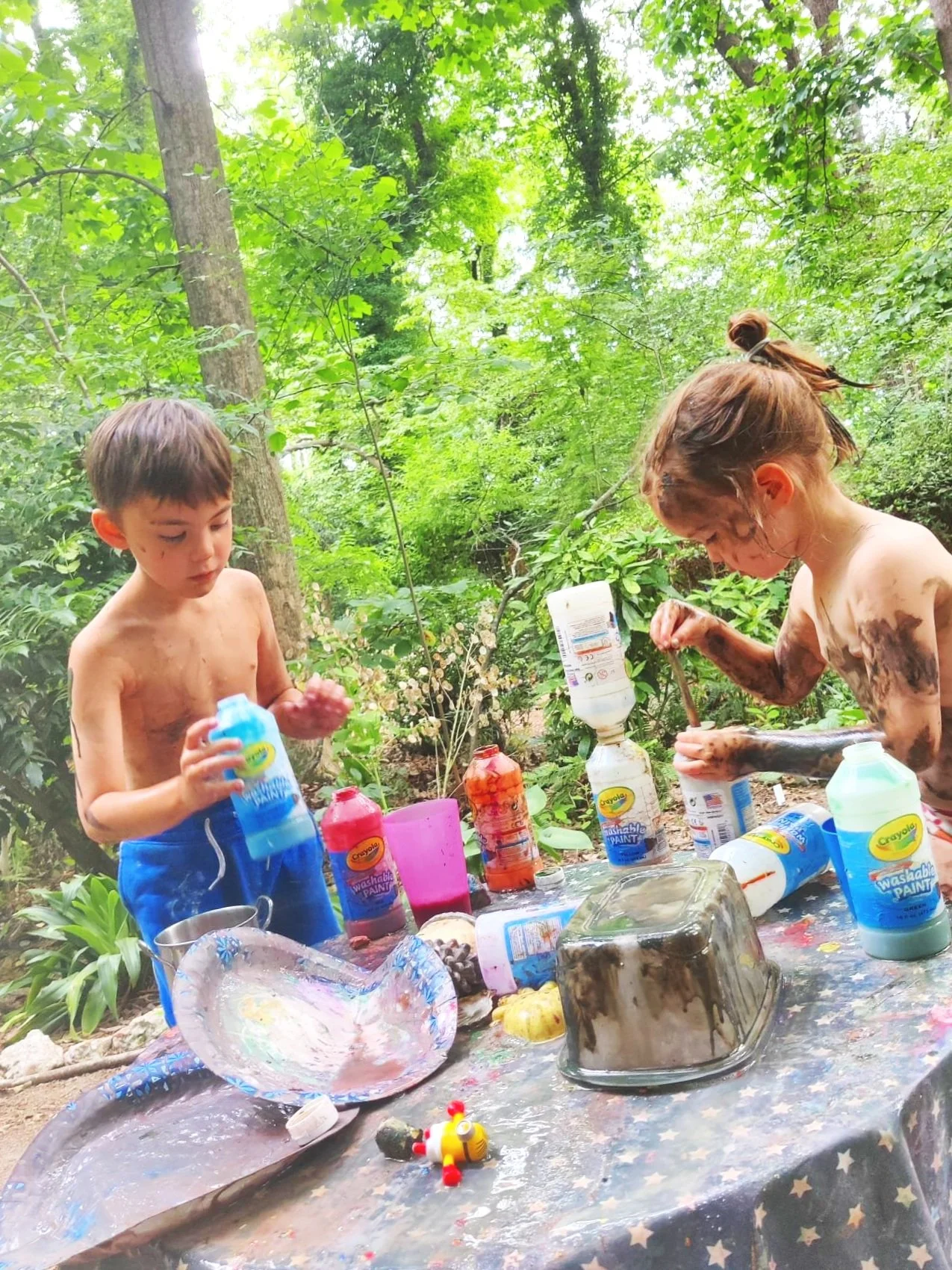 Use washable paints and natural materials like leaves and mud to create large, messy outdoor art. A hands-on way to explore nature and creativity.