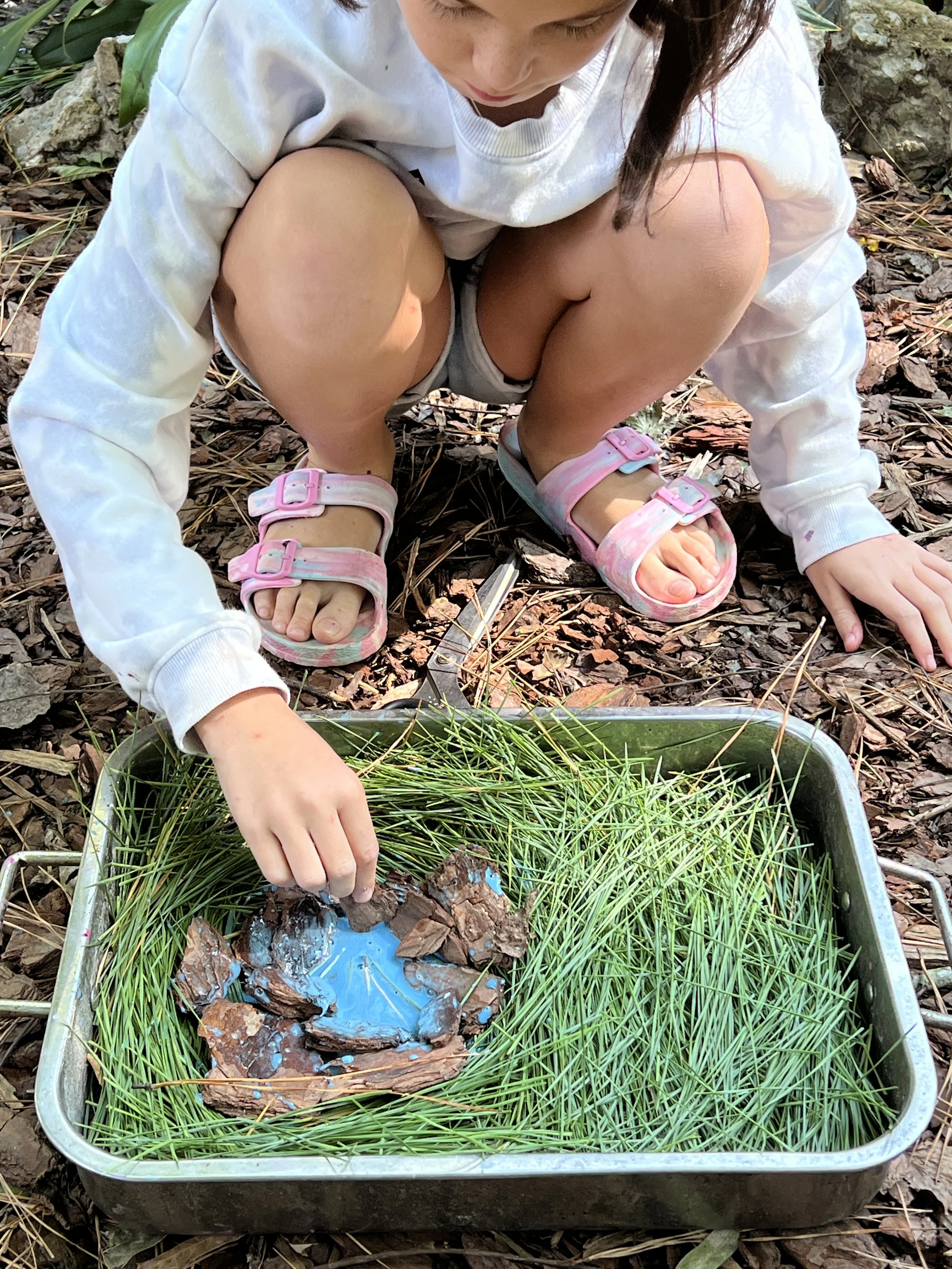 Using leaves, flowers, and twigs from the forest, kids create beautiful wreaths to take home. A fun way to craft with nature and learn about local plants.